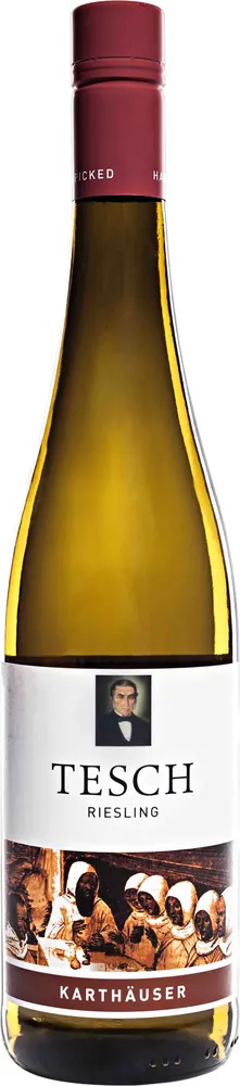 Německé bílé suché víno Riesling Karthäuser z regionu Nahe a vinařství Tesch. Vyrobeno z odrůdy Riesling sklizených z 50-let starých keřů vinice Karthäuser.