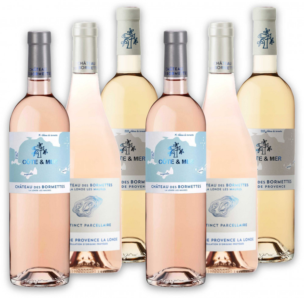 Degustační set provensálského vinařství Chateau des Bormettes. V setu ochutnáte celkem tři druhy vína po dvou lahvích. První bílé je vyrobeno z odrůdy Rolle (neboli Vermentino), druhé je růžové, svěží s tóny po divokých jahodách a třetí plnější a komplexní prémiové růžové Instinct Parcellaire. Všechna vína jsou suchá, osvěžující a ideál společník pro slunečné dny.